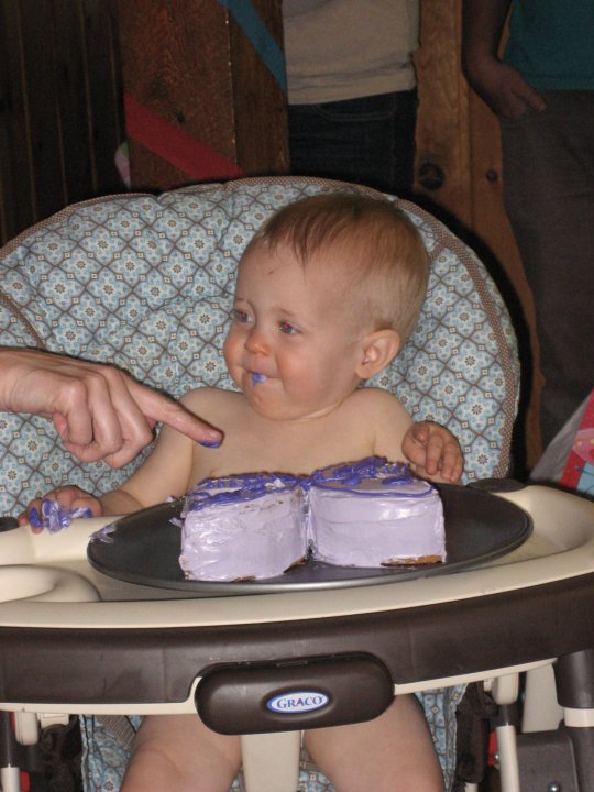 Anyway, to start out the day, we had a yard sale at our friend's house, and before it was over, Celeste had a low grade fever. We're still not sure what was wrong, but she was listless and clingy for most of the rest of the day. It is so sad to see your child sick on their birthday, but I'm sure many a parent has gone through it. We had her party at a brother and sister's house, since our house is just too small to fit the family and friends. She seemed to perk up a little when the party started, and even was brave enough to dig into the cake a little. But after a few bites of mostly frosting, she looked to me like she was going to pass out, so we cleaned her up and got her ready for present opening.